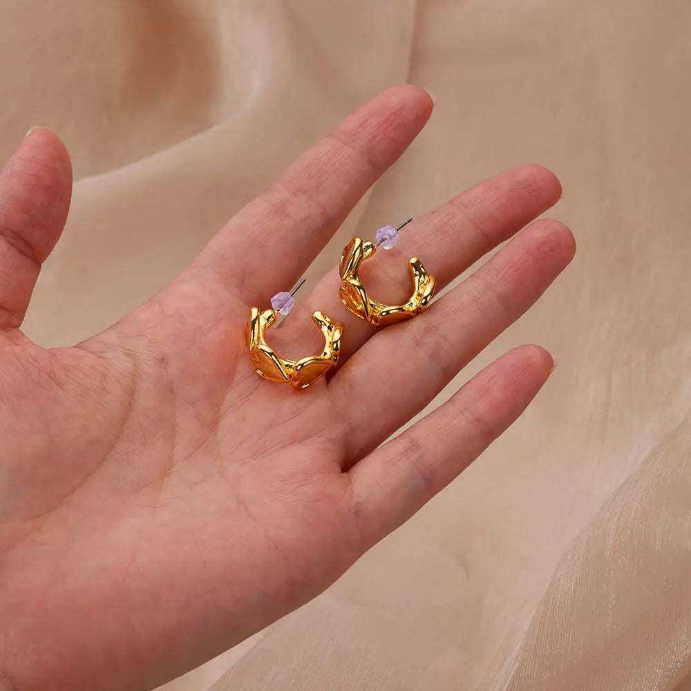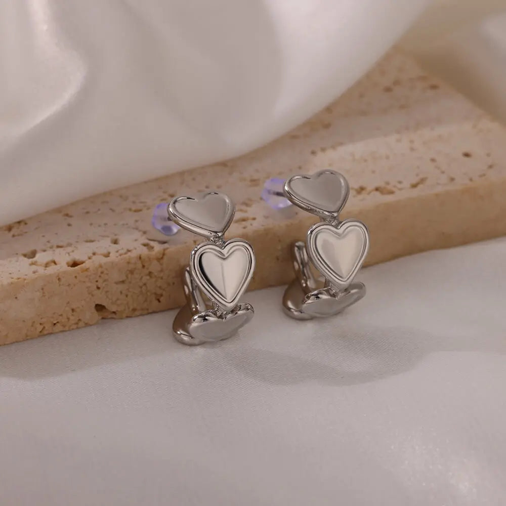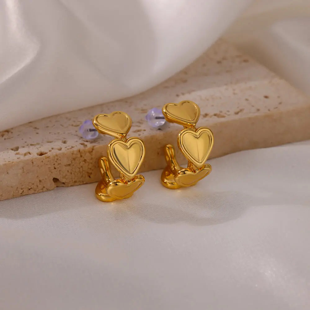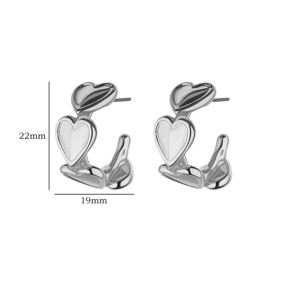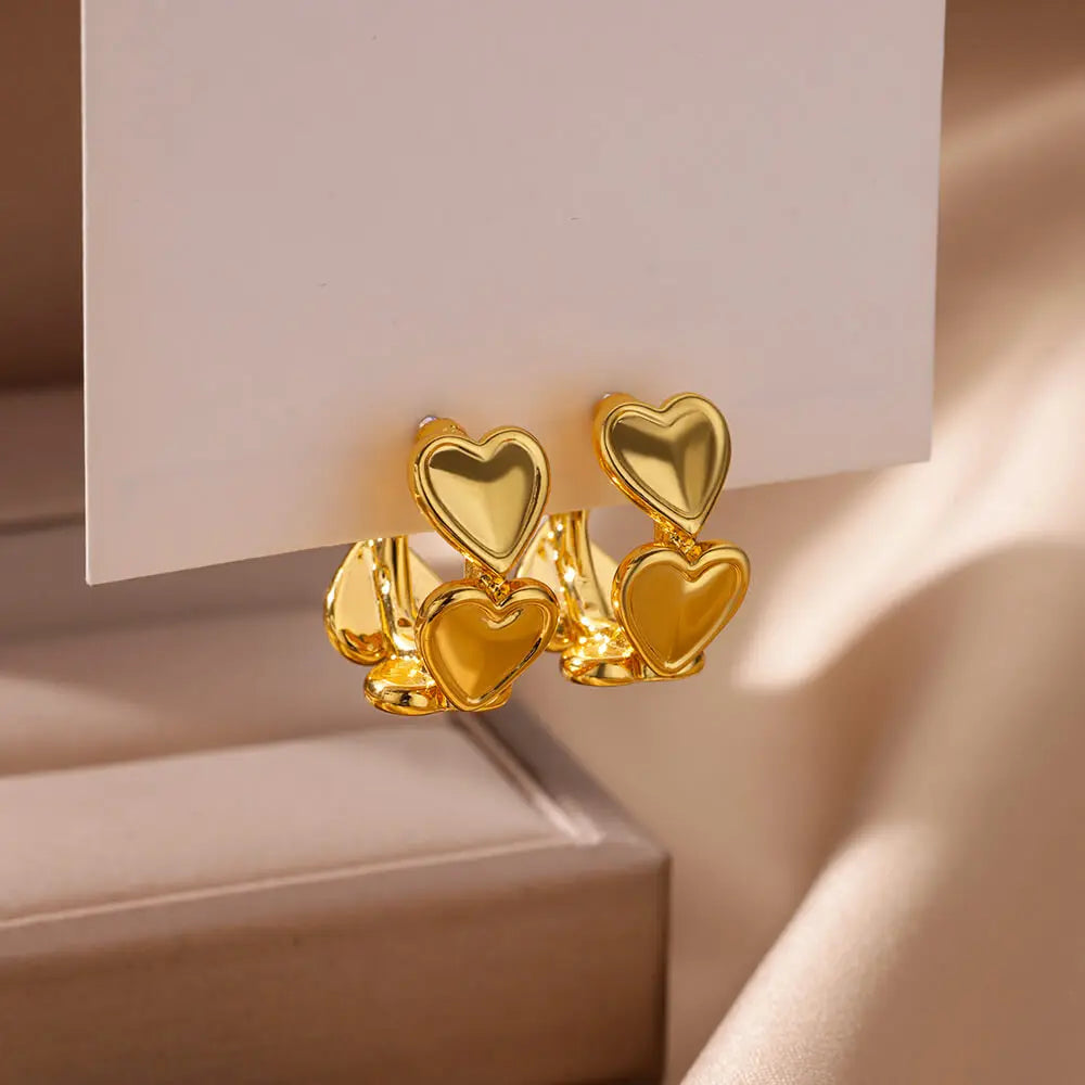 Koean Fashion Love Heart Stud Earrings For Women Gold Color Stainless Steel Geometric Piercing Ear Accessories Party Jewelry