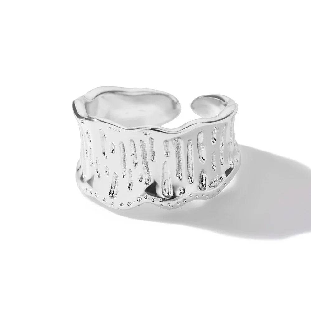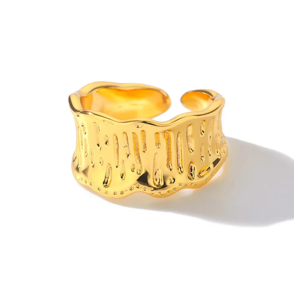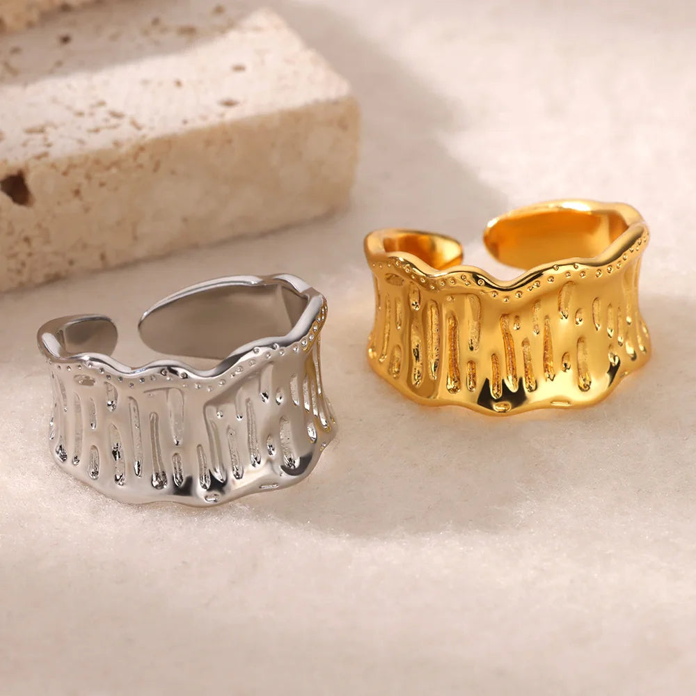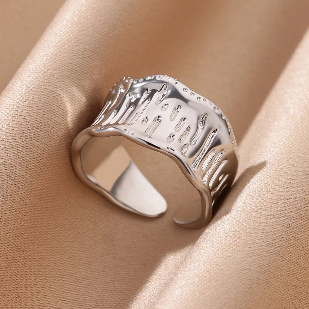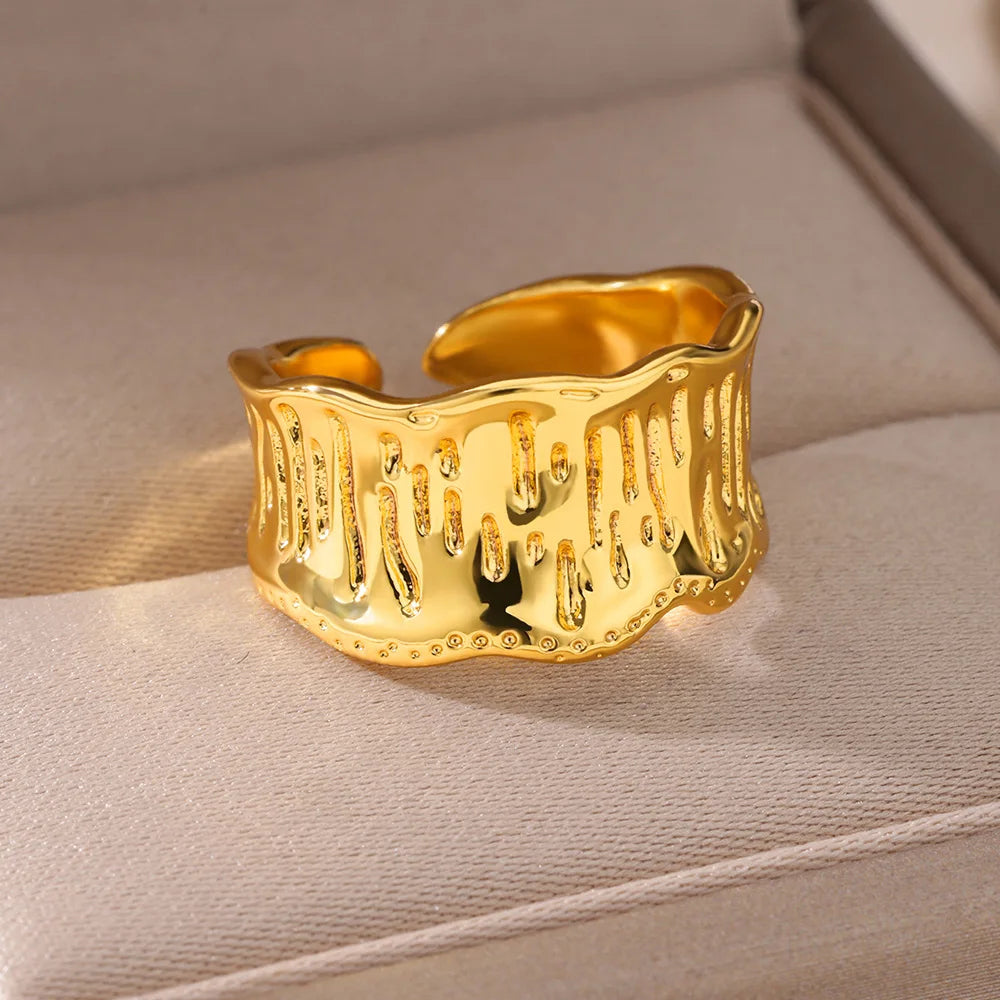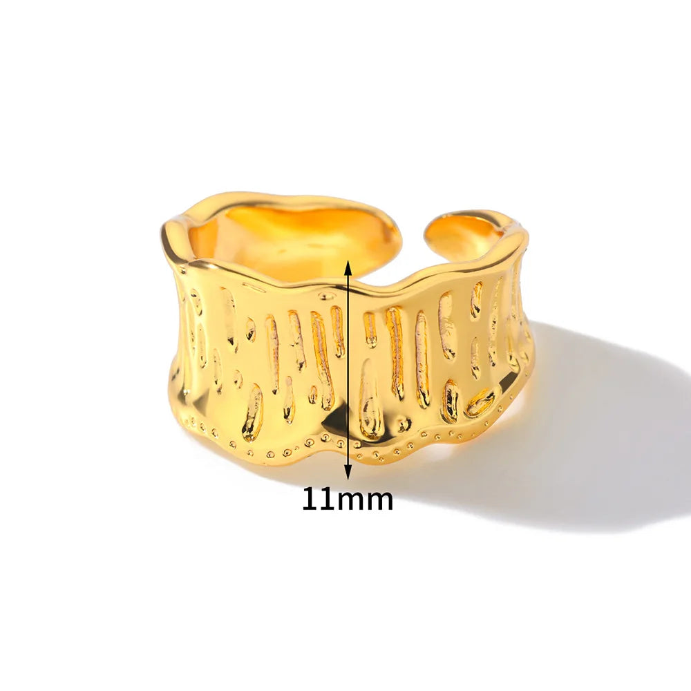 Stainless Steel Rings for Women Gold Color Irregular Wide Adjustable Open Ring Aesthetic Wedding Jewelry Accessories