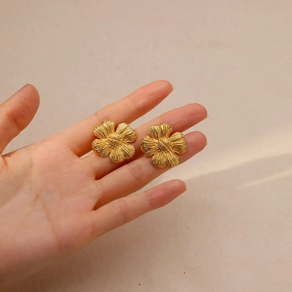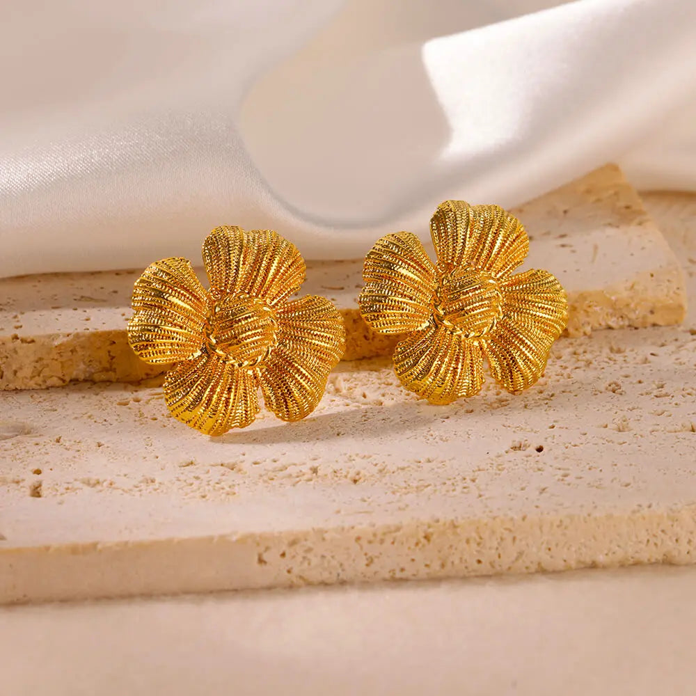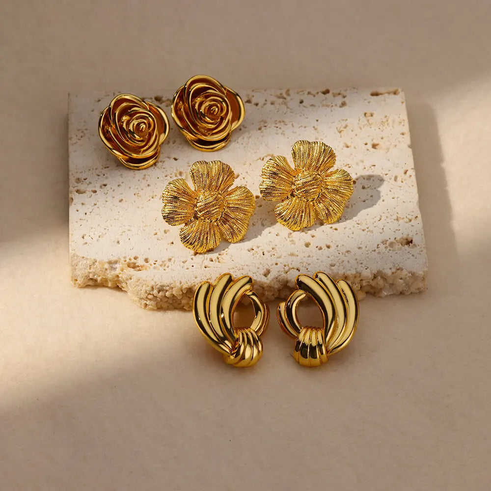 Fashion Rose Stud Earrings For Women Stainless Steel Gold Color Flowers Piercing Ear Accessories Trend Wedding Jewelry Gift