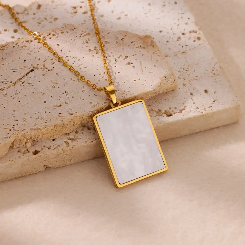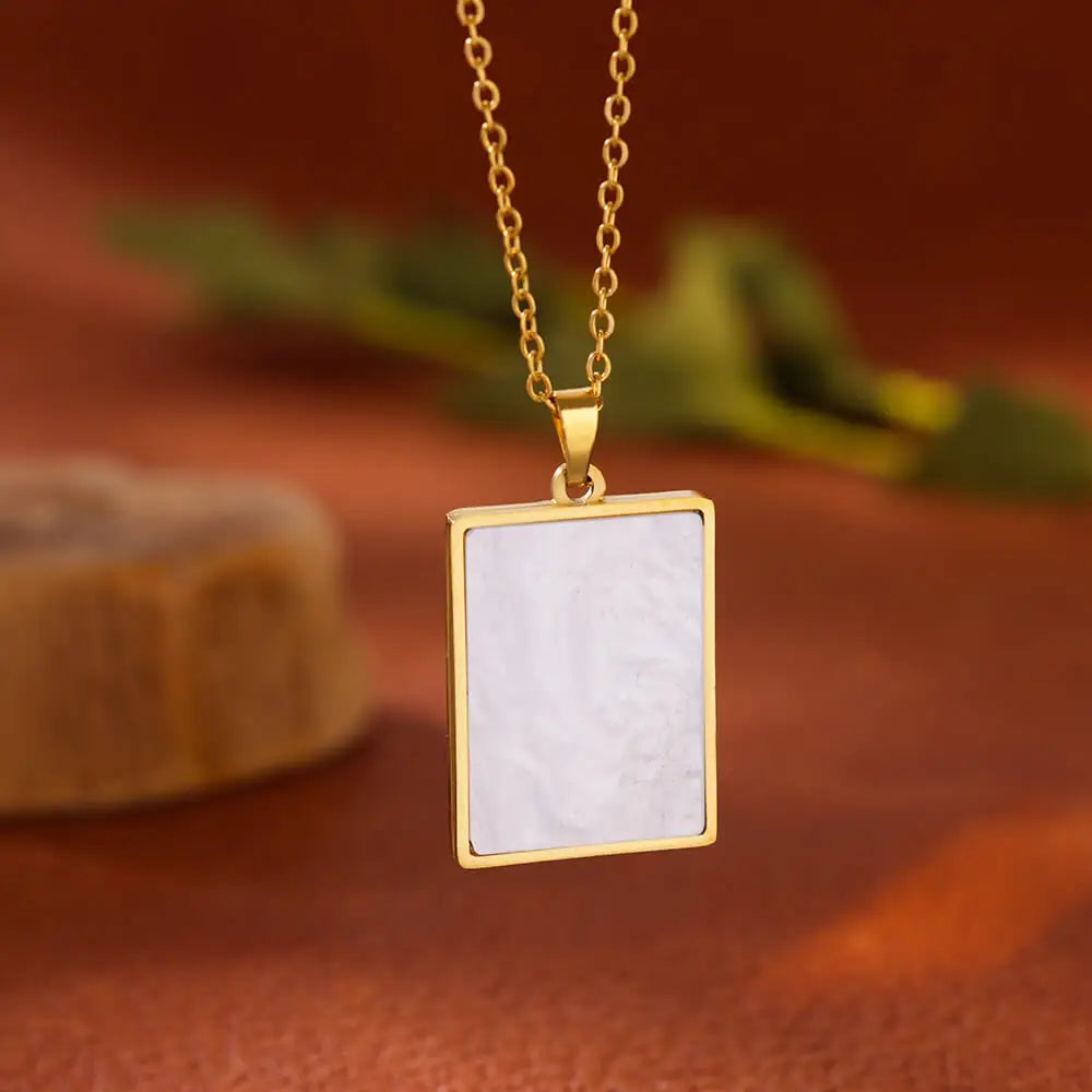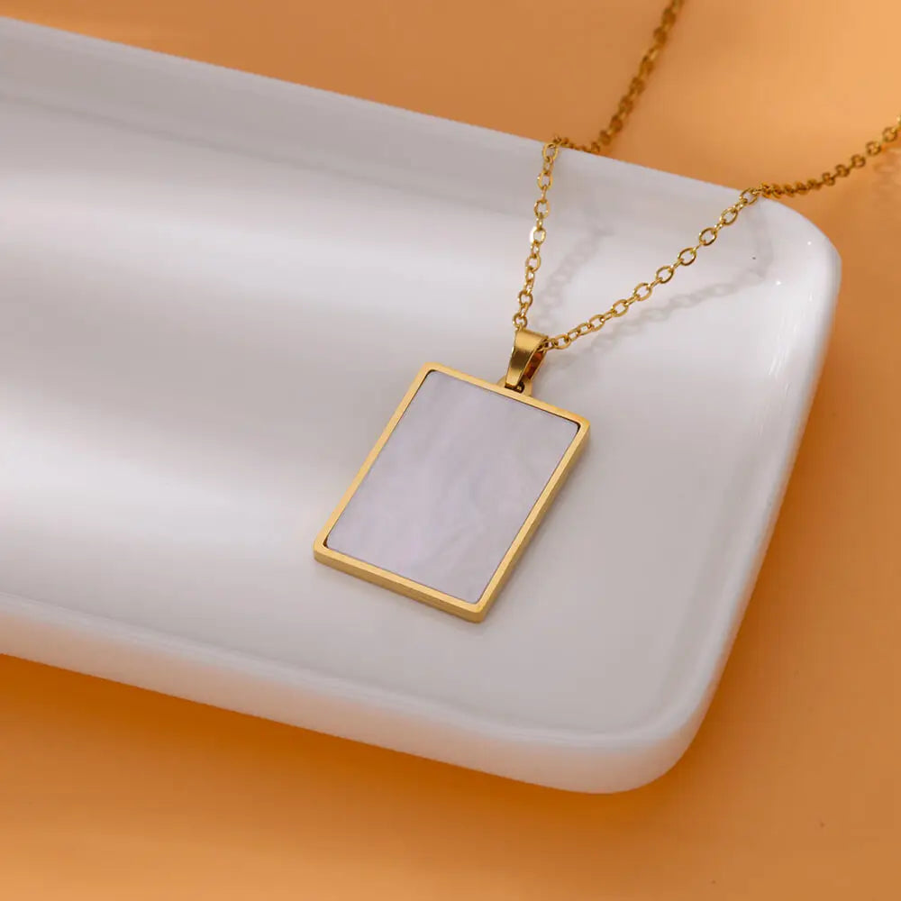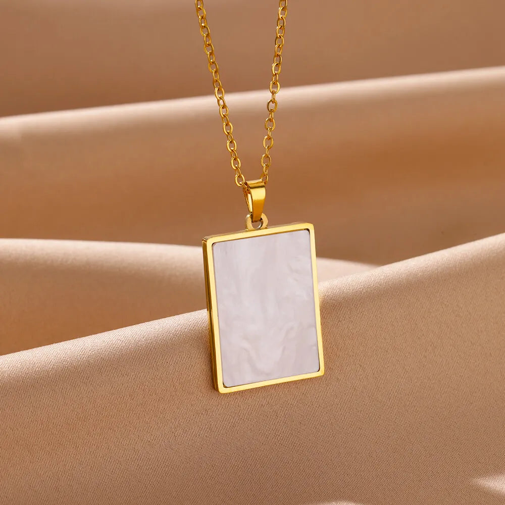 Fashion Square Necklace for Women Korean White Geometric Pendant Necklace Collar Neck Gold Color Chain Charm Jewelry Party Gift