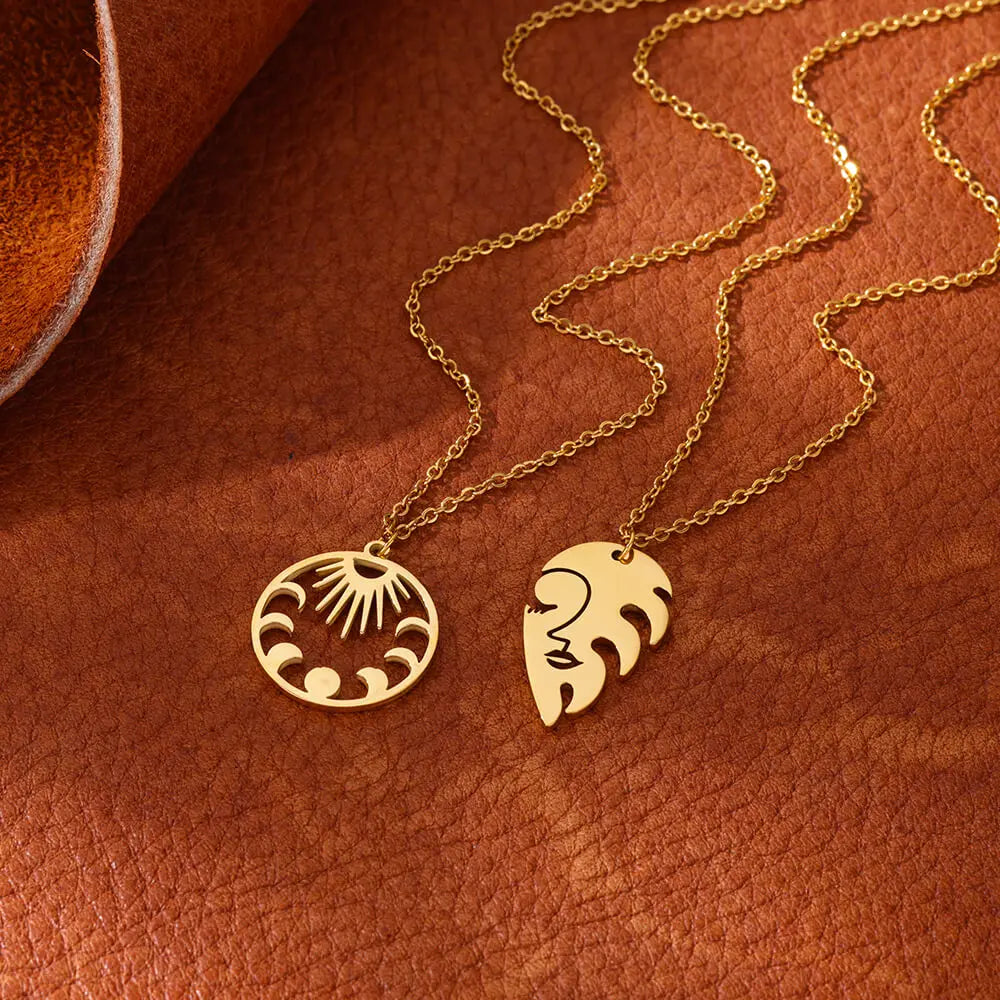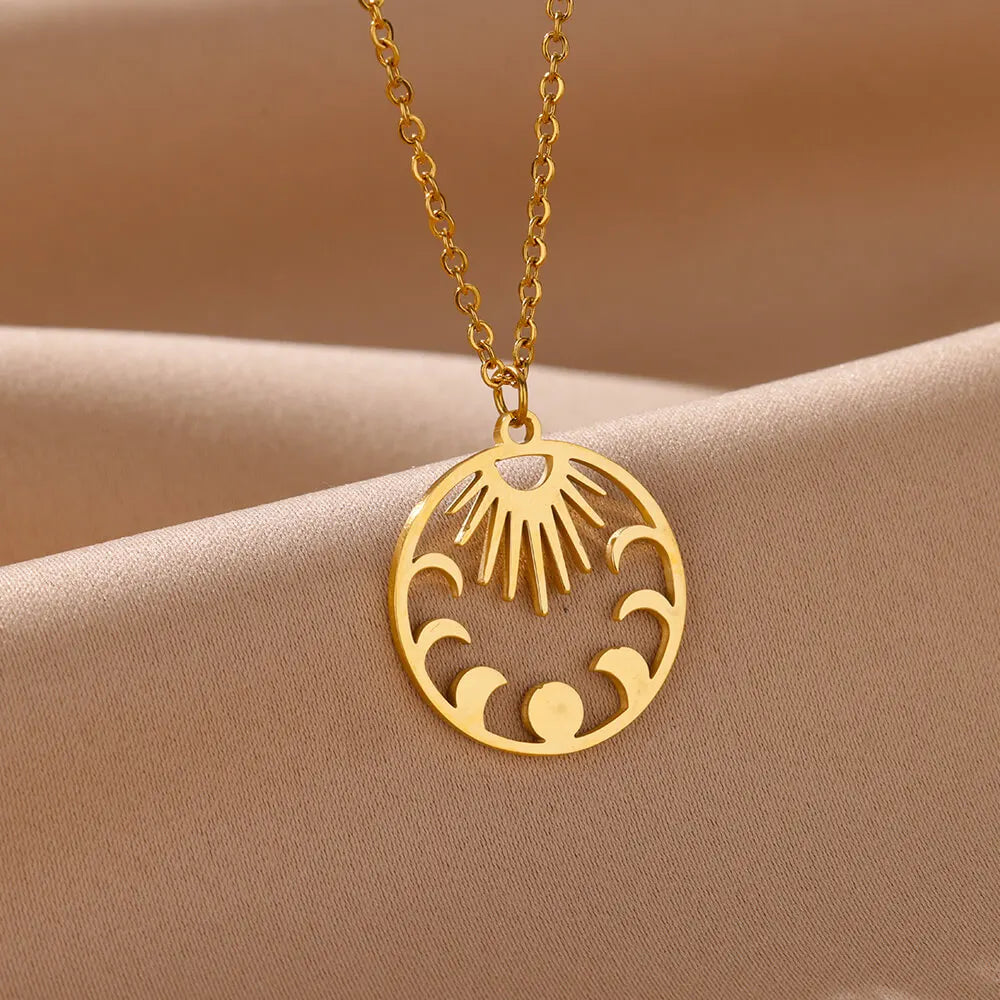 Hollow Out Round Necklaces For Women Stainless Steel Gold Color Fashion Sun Moon Pendant Necklace Jewelry Trend Wedding Gifts