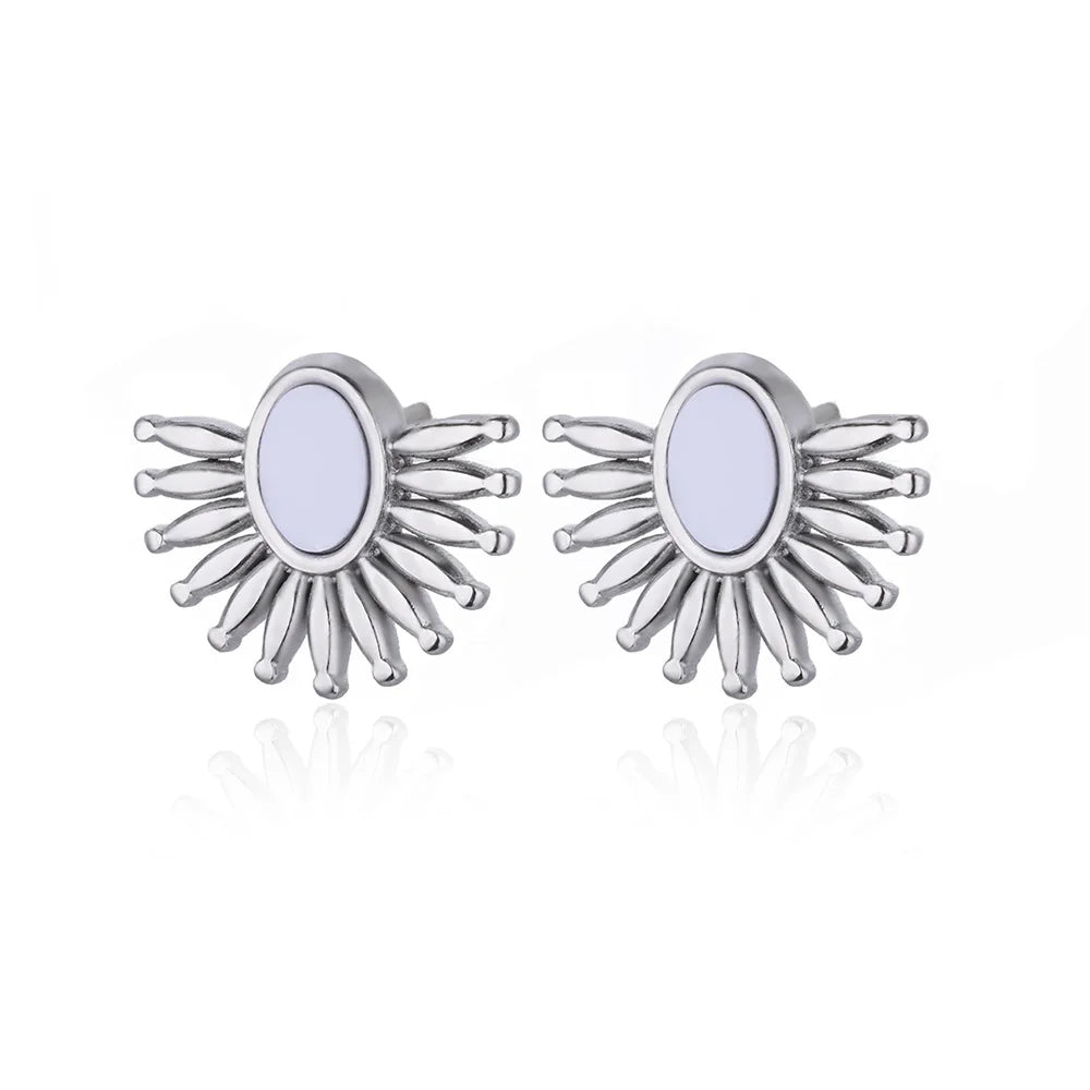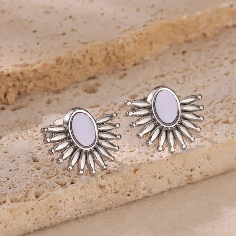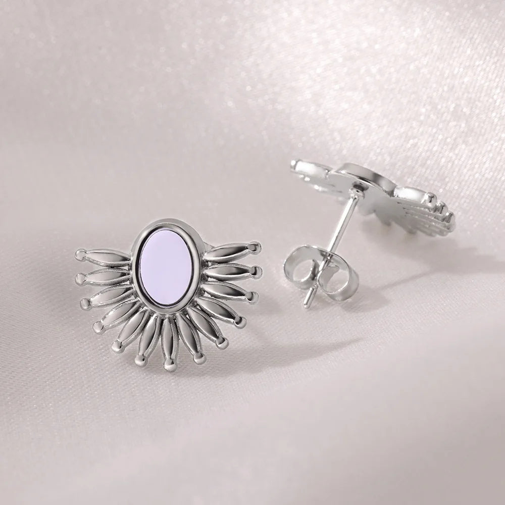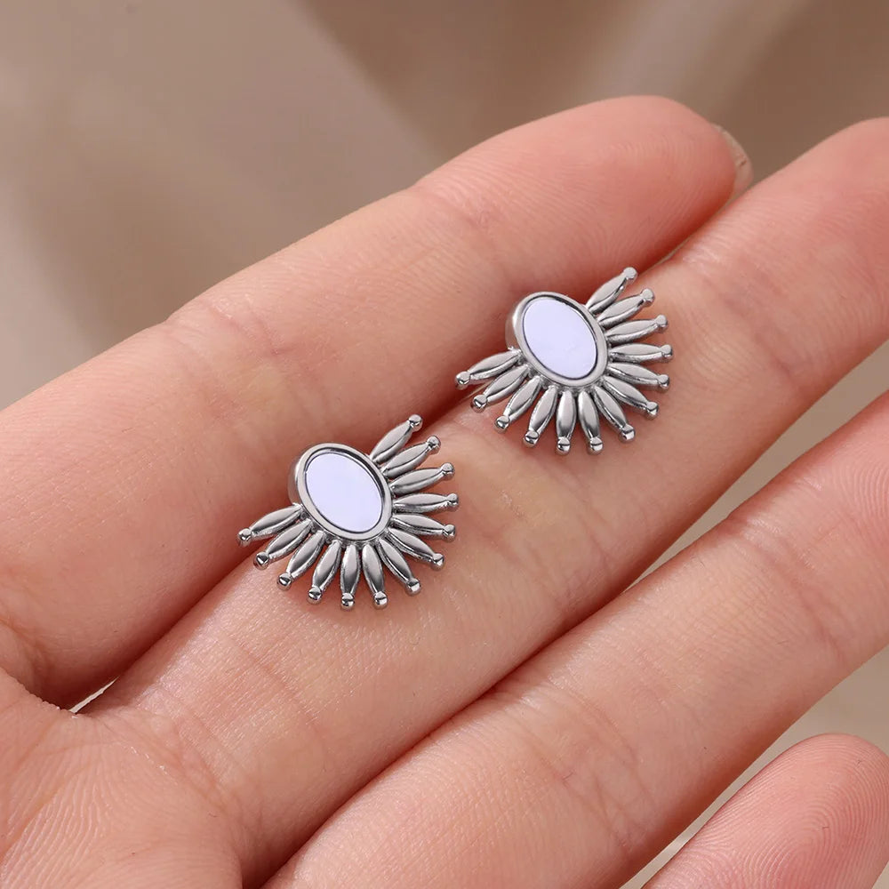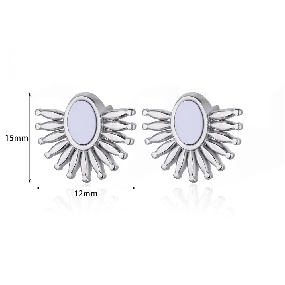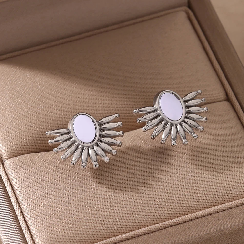 Retro Jewelry Half Round Earrings Stainless Steel 2024 Trend Elegant Temparement Geometric Stud Earrings For Women Female Gift
