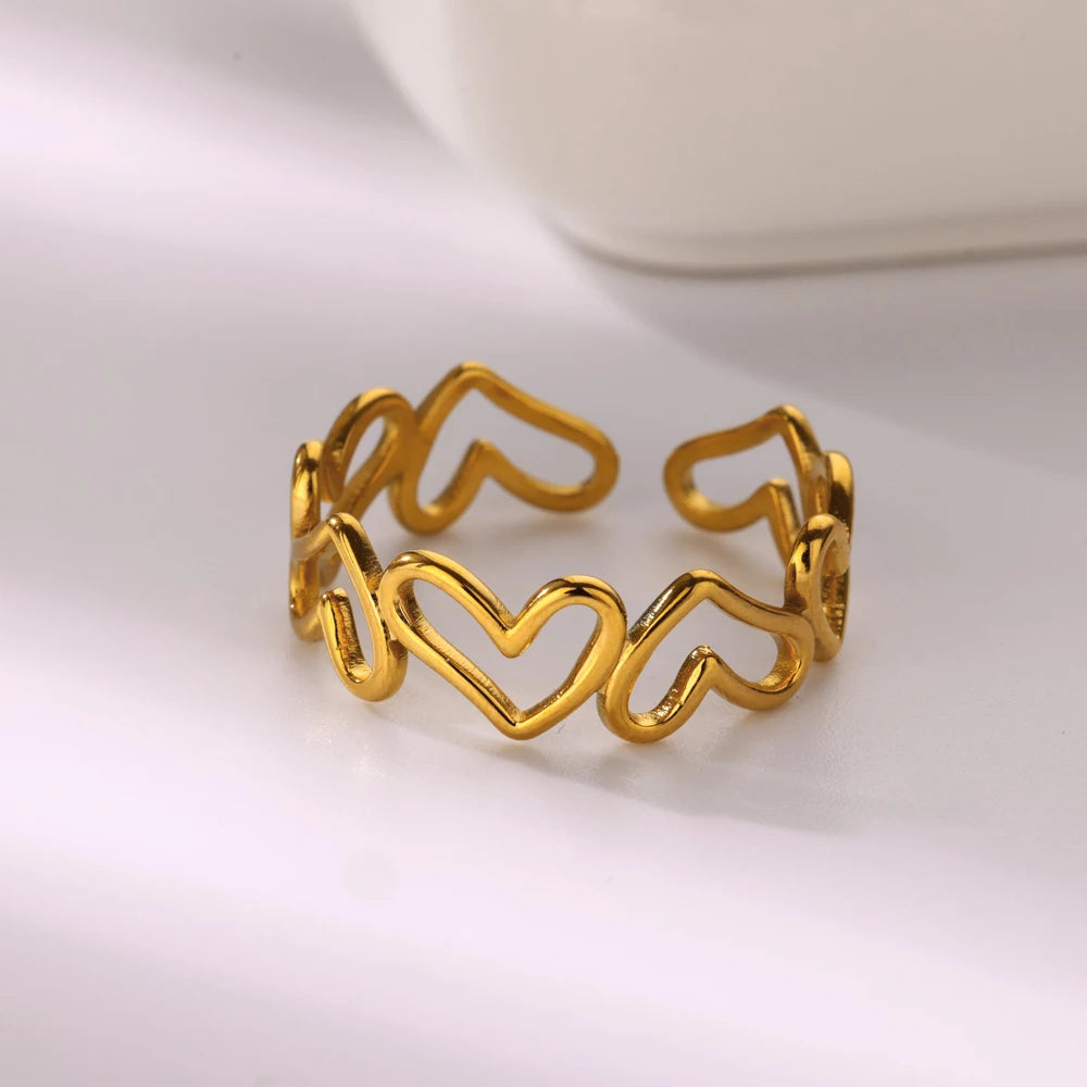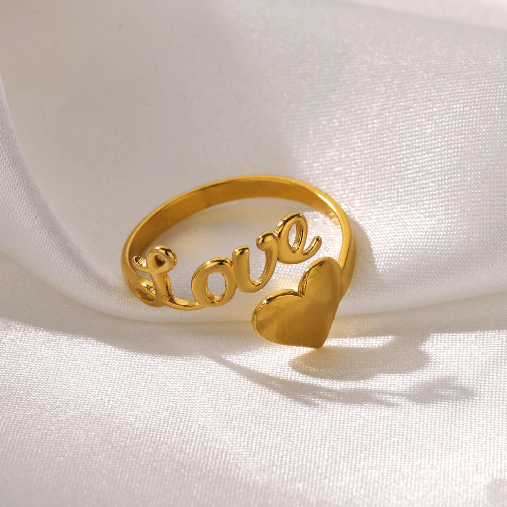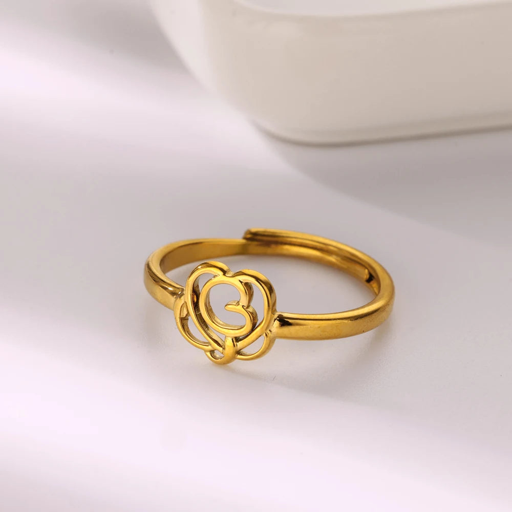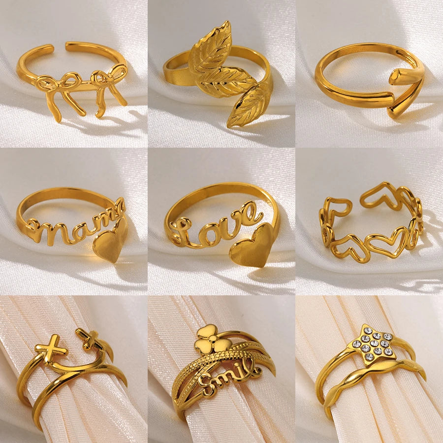 Stainless Steel Gold Color Rings For Women Fashion Heart Hollow Open Ring Female 2024 Trendy Engagement Wedding Party Jewelry