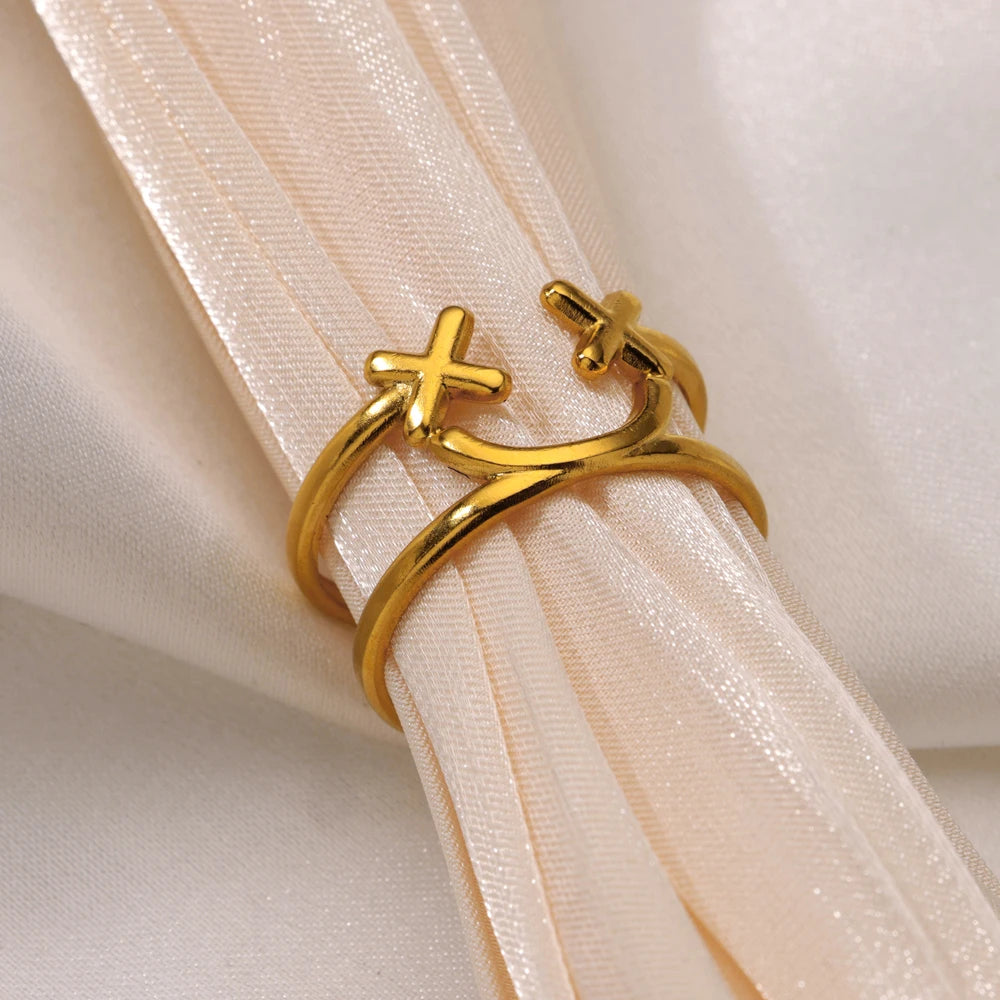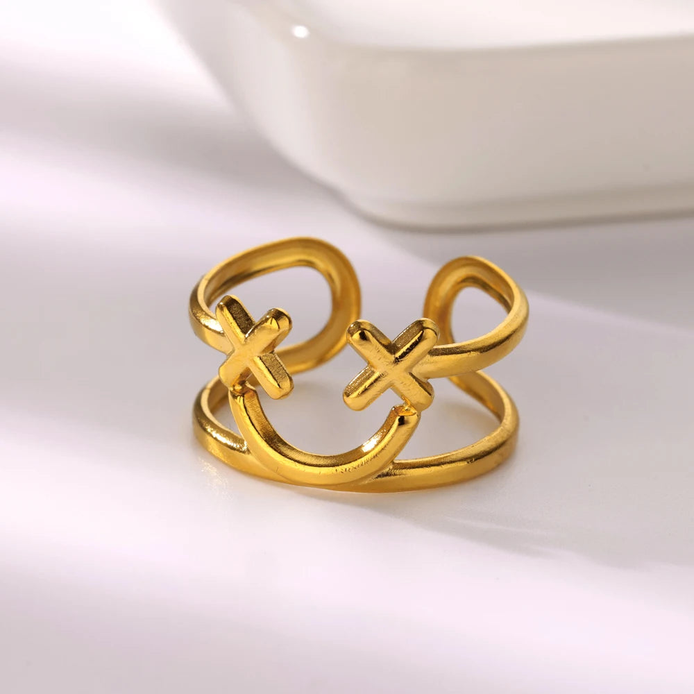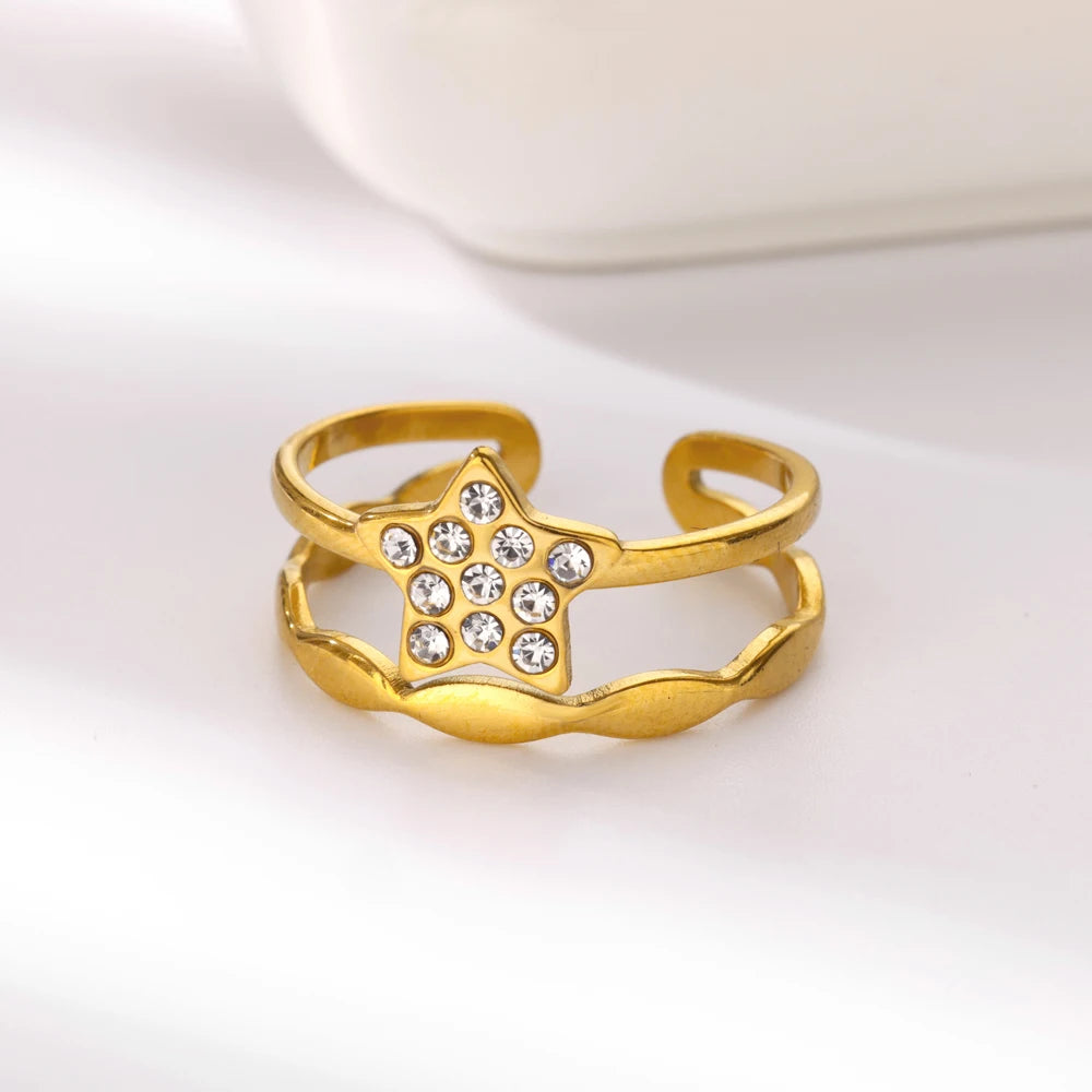 Stainless Steel Gold Color Rings For Women Fashion Heart Hollow Open Ring Female 2024 Trendy Engagement Wedding Party Jewelry