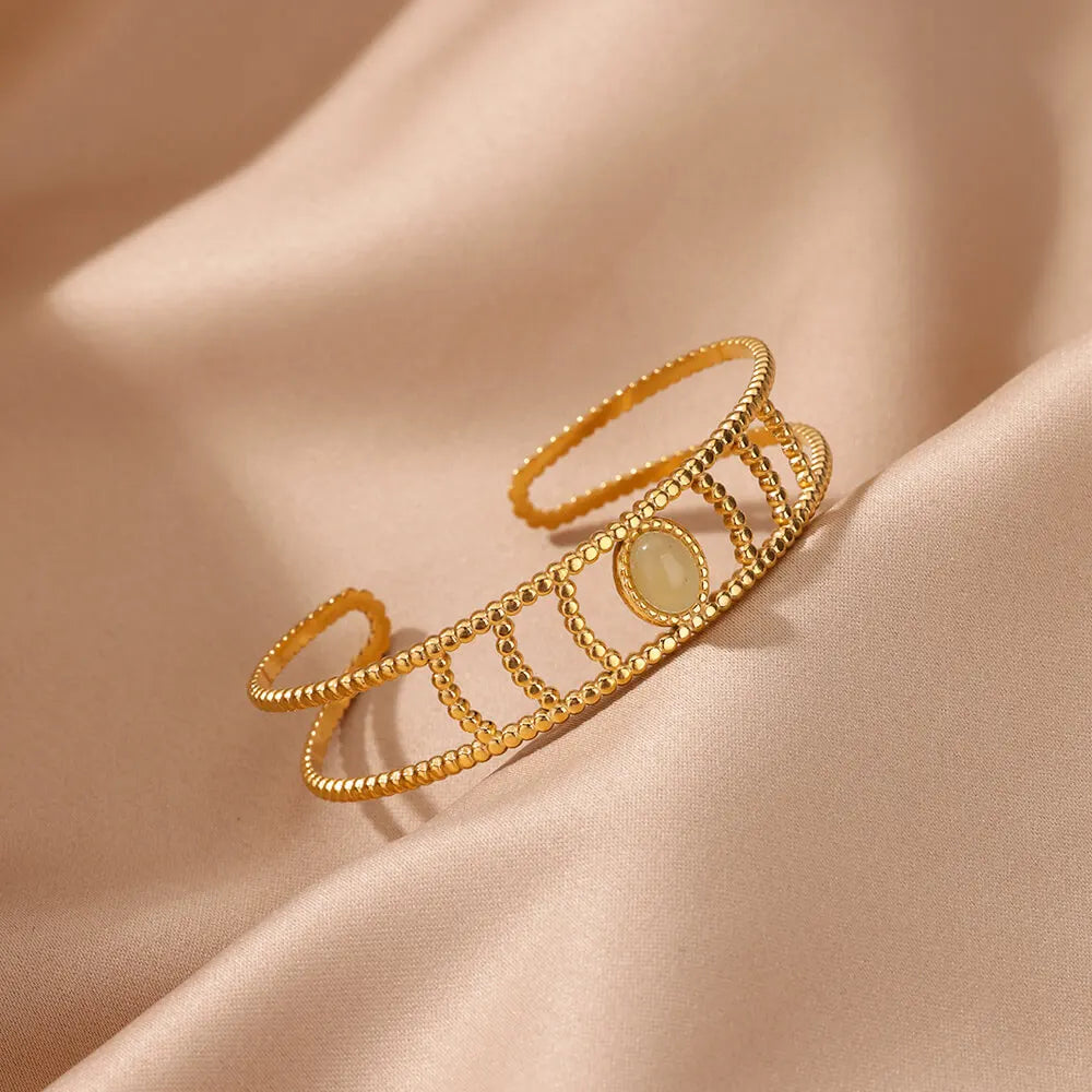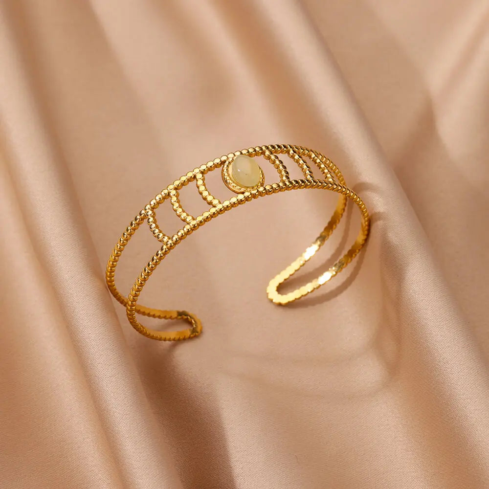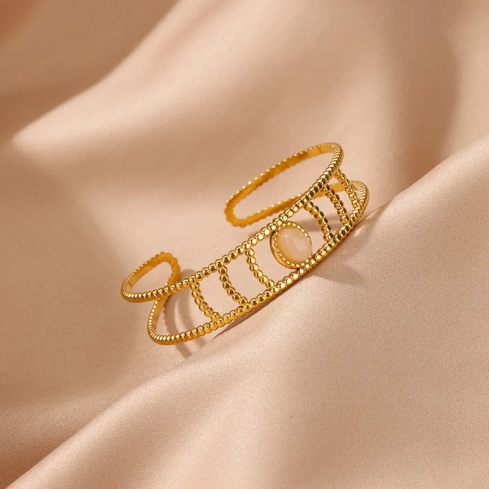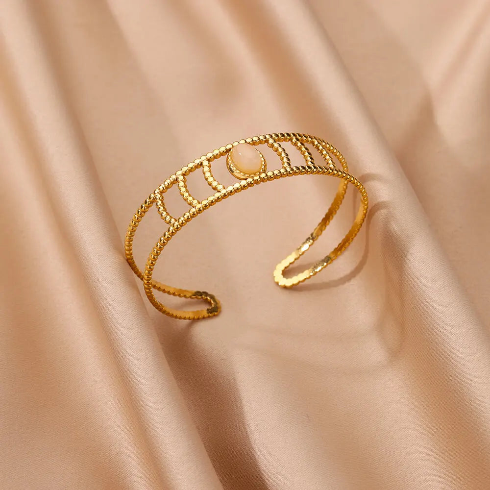 Stainless Steel Hollow Out Bangles For Women Gold Color Open Adjustable Cuff Bangle Bracelet Fashion Elegant Jewelry Gift