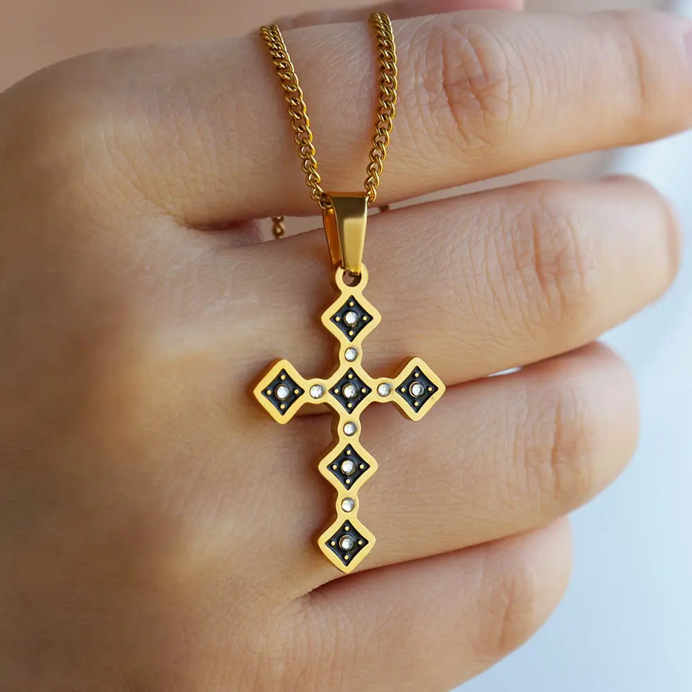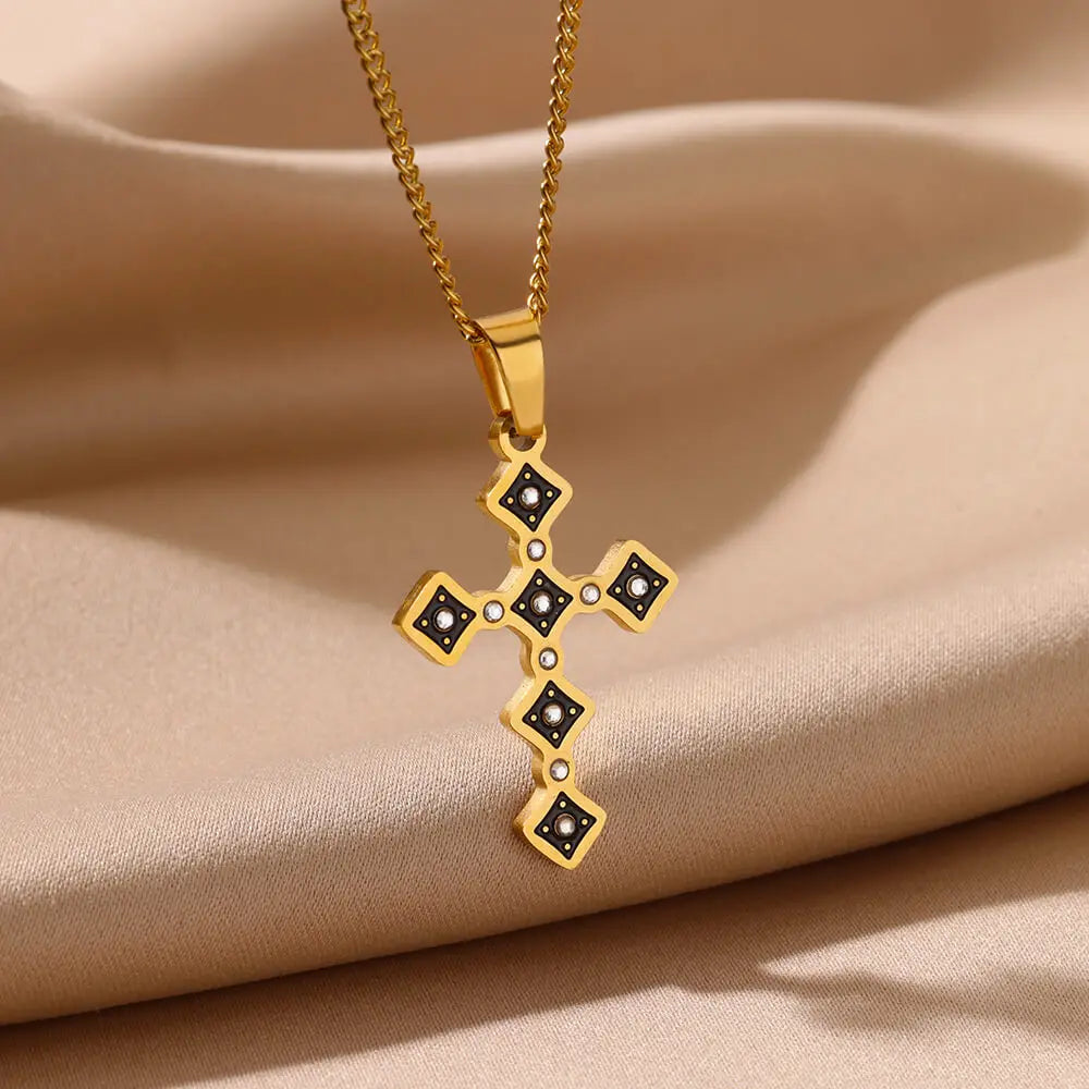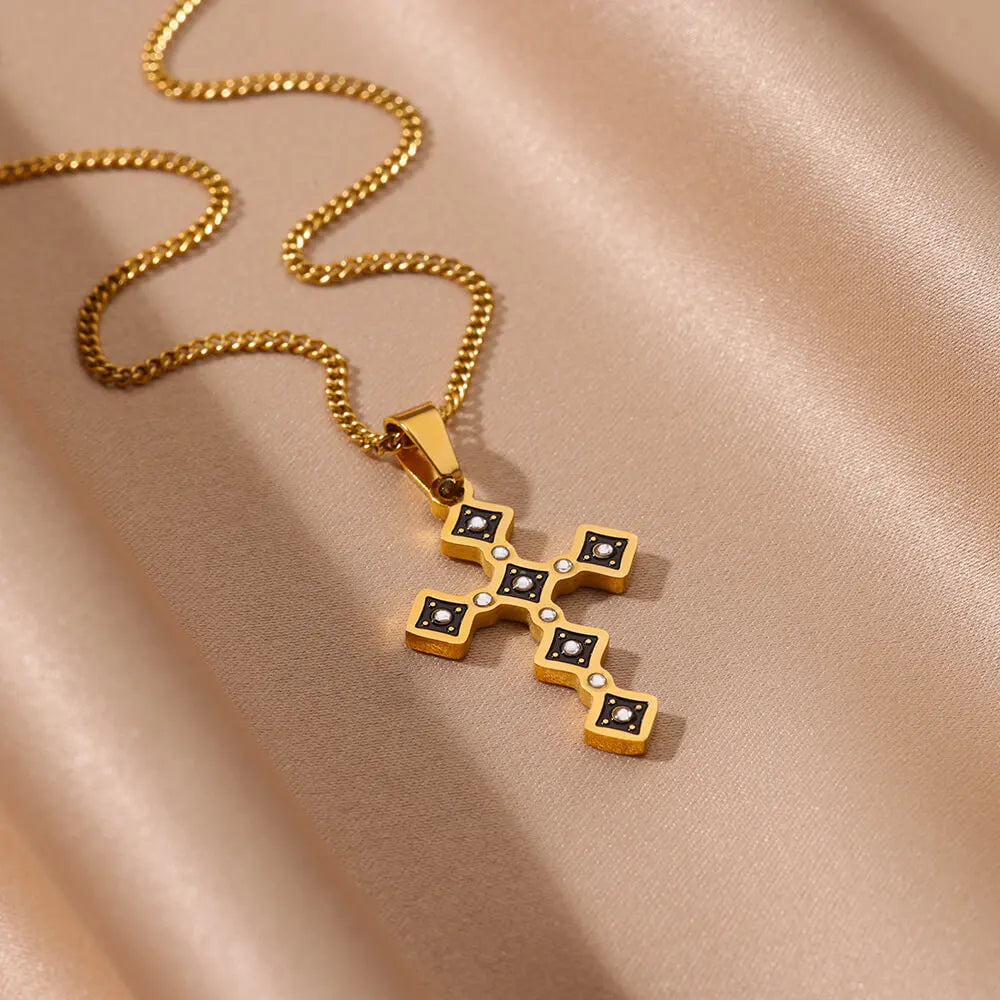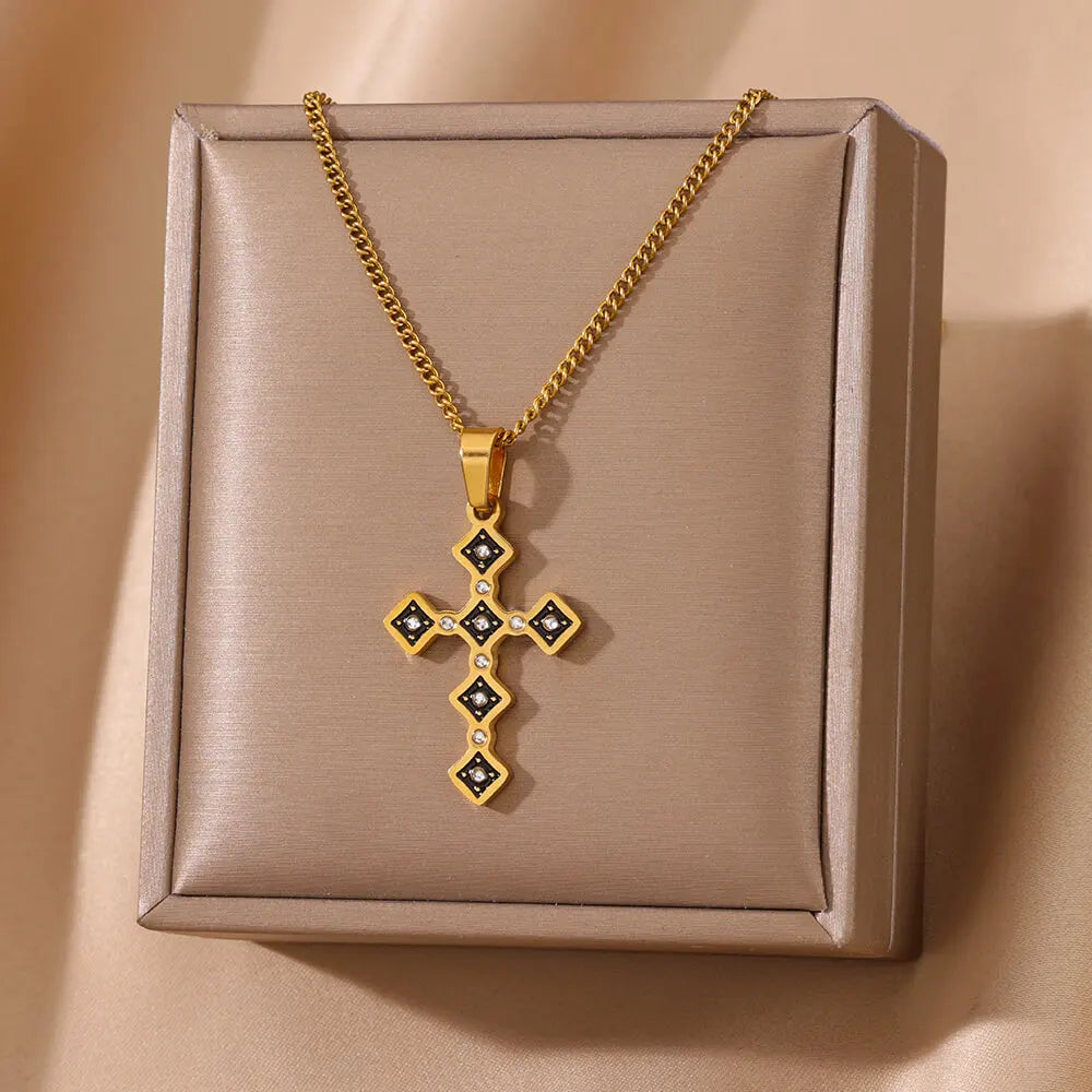 Zircon Cross Pendant Necklaces for Women Gold Color Stainless Steel Clavicle Chain Neckalce 2024 Trend Goth Jewelry Gifts